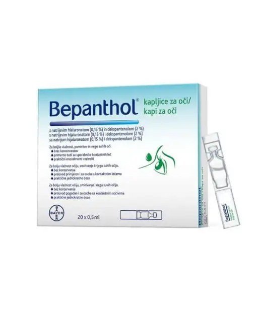 - Bepanthol® kapi za oči sadrže dve prirodne materije, hijaluronsku kiselinu i dekspantenol, koji nadraženom oku pružaju trenutno olakšanje.