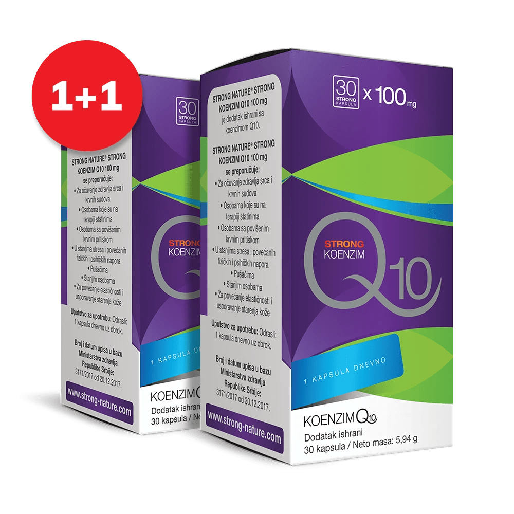 Strong Nature Strong Koenzim Q10 100 mg je dodatak ishrani koji se posebno preporučuje za održavanja vitalnosti i zdravlje srca i krvnih sudova.